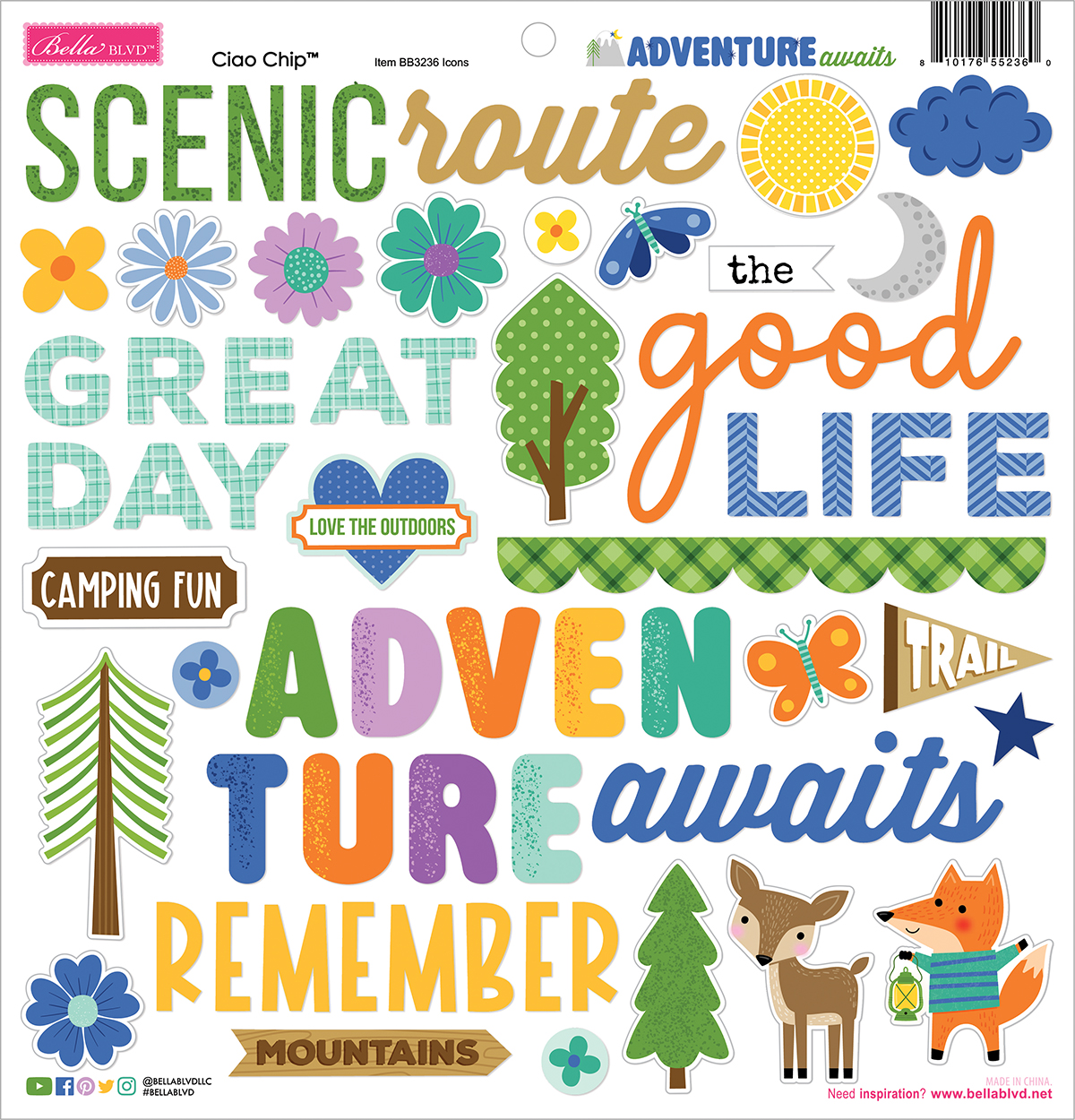 BELLA BLVD -Collezione Adventure Awaits – Ciao Chipboard Icons
