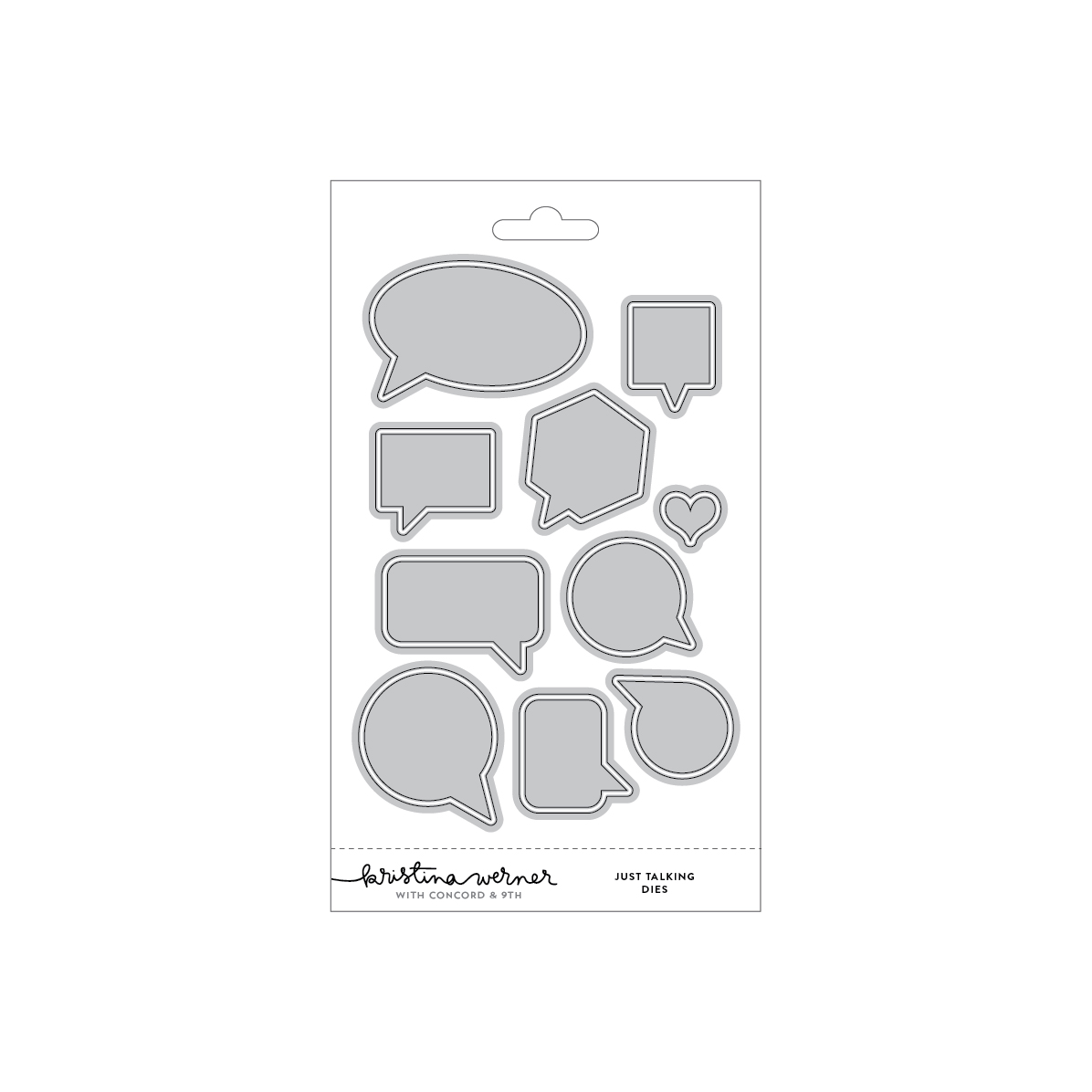 Il set di fustelle Just Talking include nove forme di fumetti, piรน i livelli ombra (che si coordinano anche con il set di timbri Just Talking).