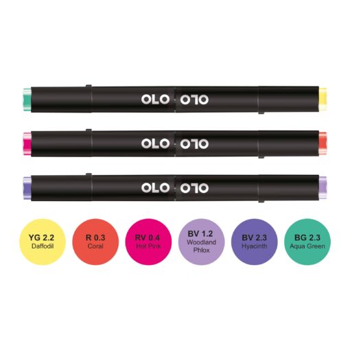 Acquistando questo kit esclusivo, composto da 6 tonalità coordinate di marker OLO, avrai accesso a un corso online imperdibile con Elisa di Lettersofme!