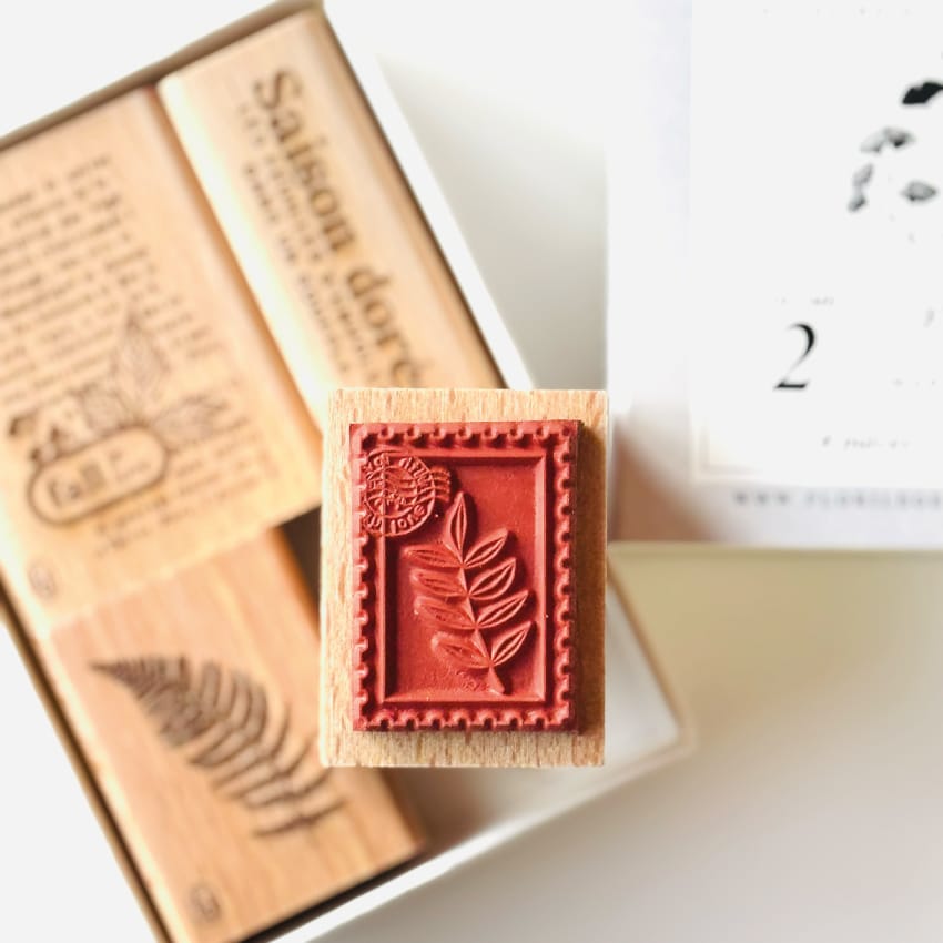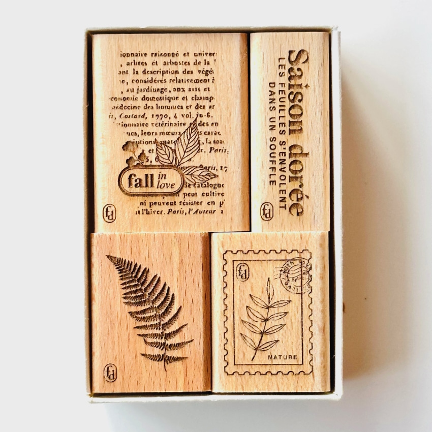 Florilèges Design – Collezione GINKGO – Set di 4 timbri in legno – FALL IN LOVE