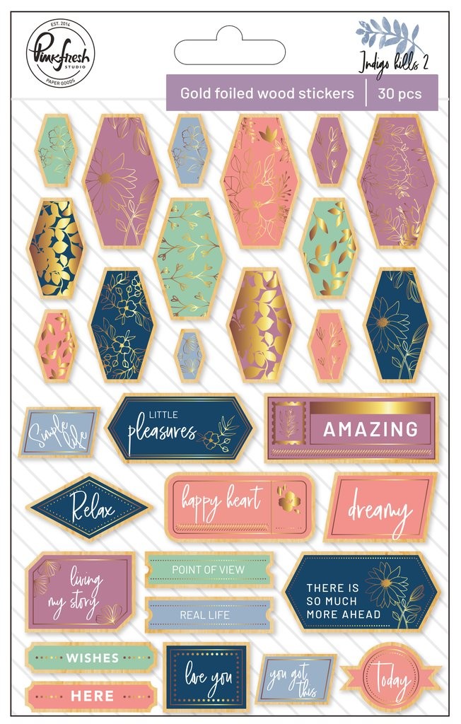 Indigo hills 2: Gold foiled wood stickers