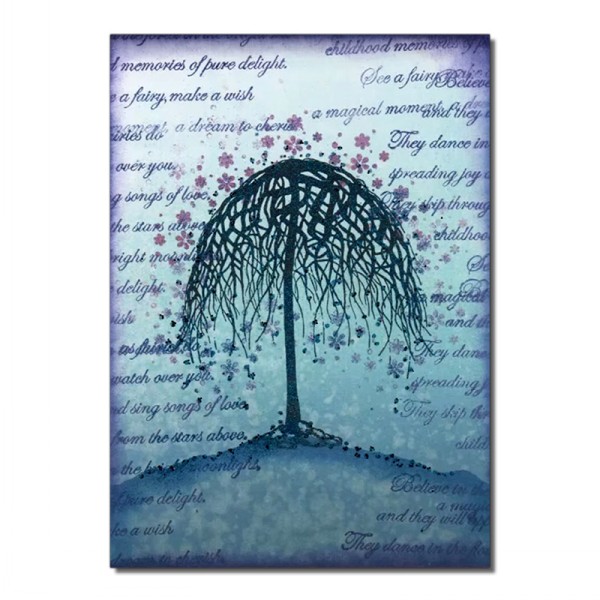 Questo elegante timbro ad albero risulta splendido se embossato e può essere arricchito con timbri di fogliame o floreali.