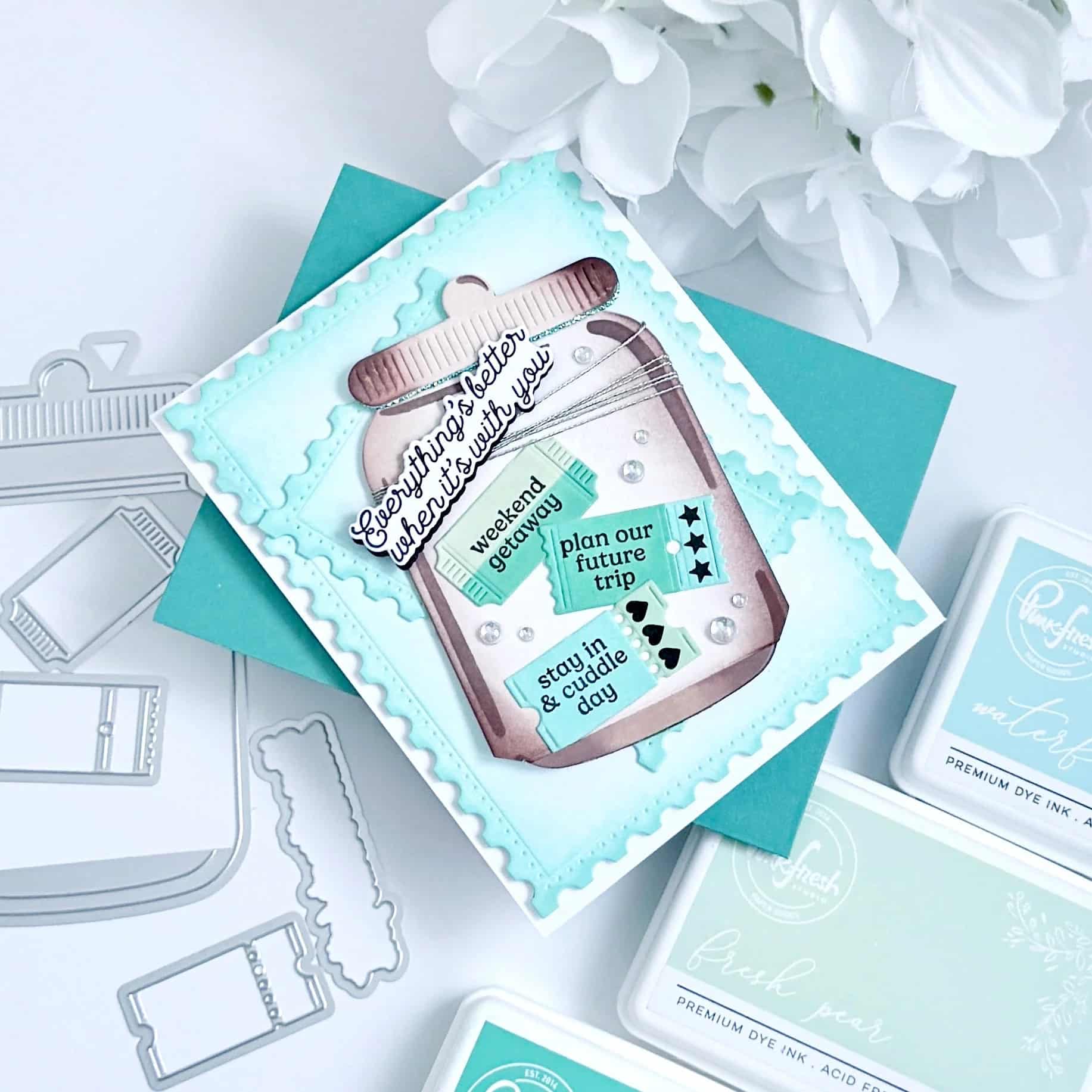 I ticket e le etichette incluse sono pensati per i sentiment più piccoli, così puoi riempire il tuo barattolo di mini “desideri”: idee per appuntamenti, affermazioni o biglietti di ringraziamento. Ideale per card d’anniversario, note di amicizia o progetti di memory-keeping.