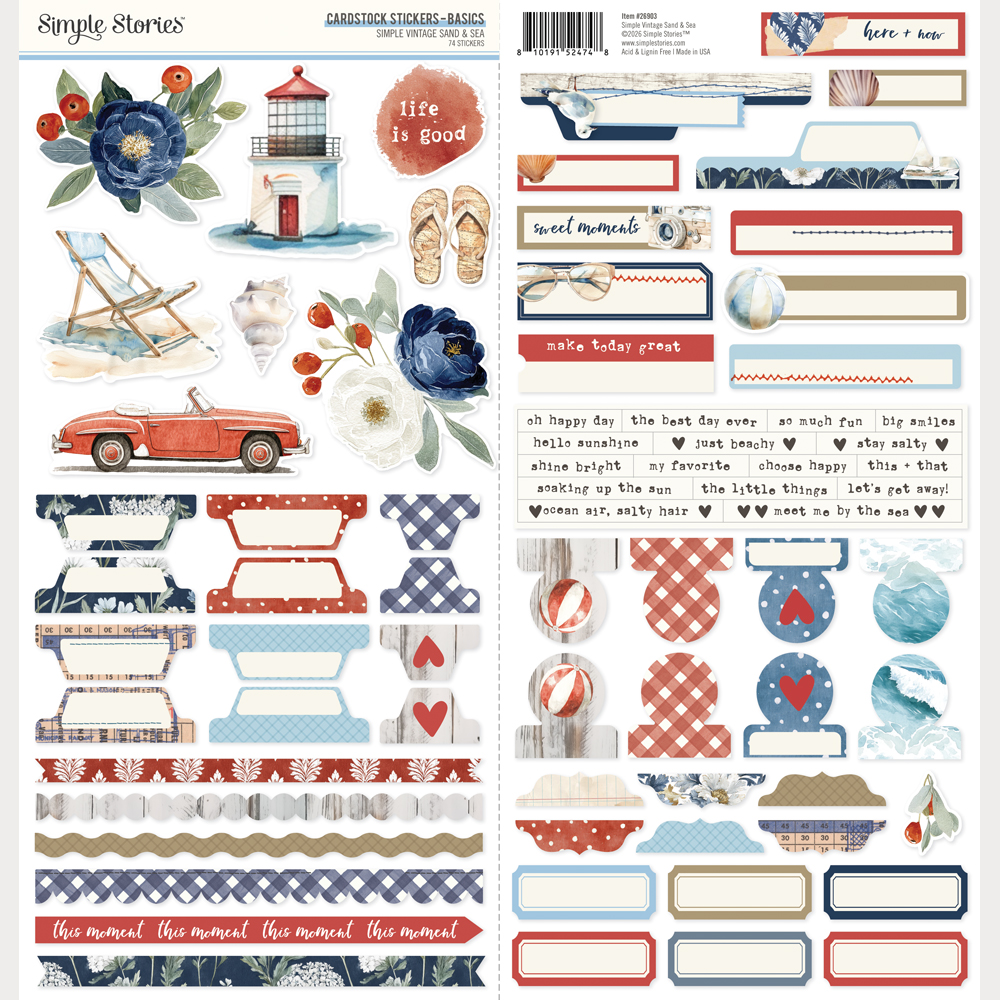 SIMPLE STORIES – Collezione Simple Vintage Sand & Sea – Cardstock Stickers Basics