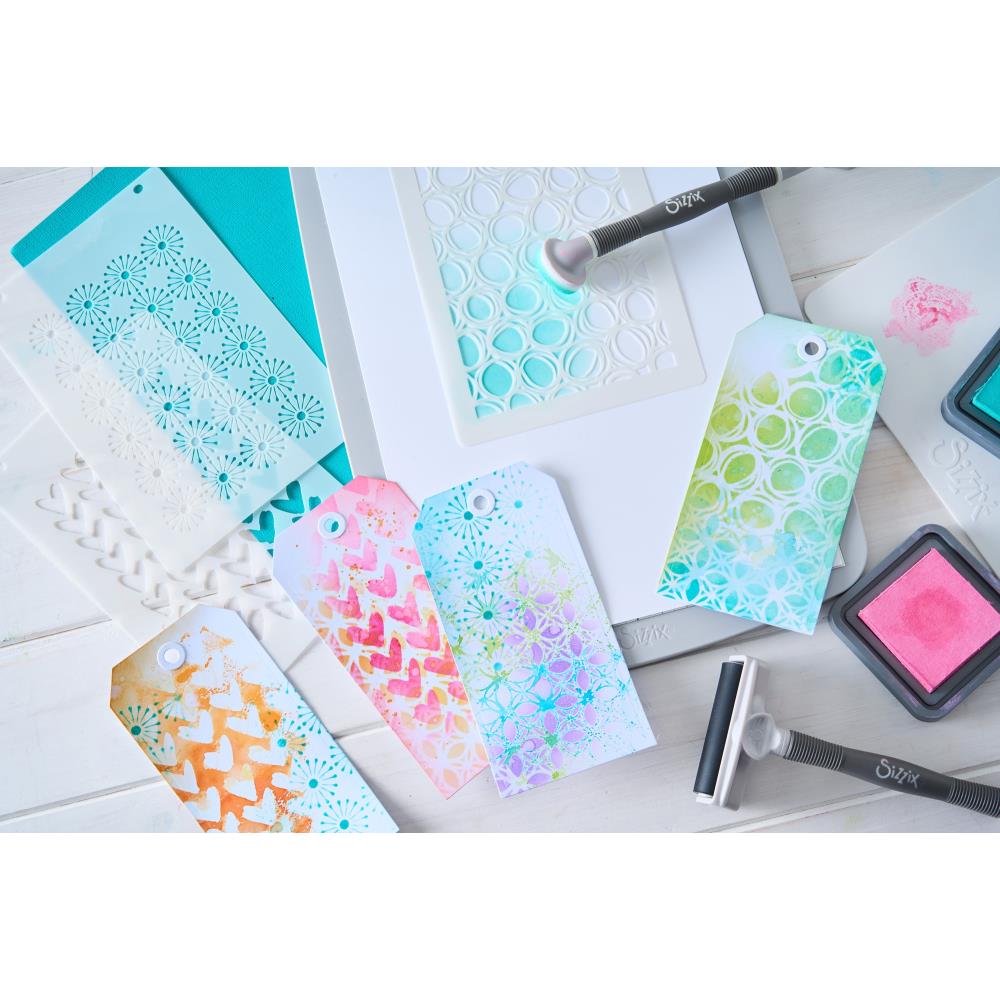 Porta la tua creatività a un livello superiore con gli Stencil Layered Sizzix A6 4PK Buildables Backgrounds #1 di Vicki Boutin ✨