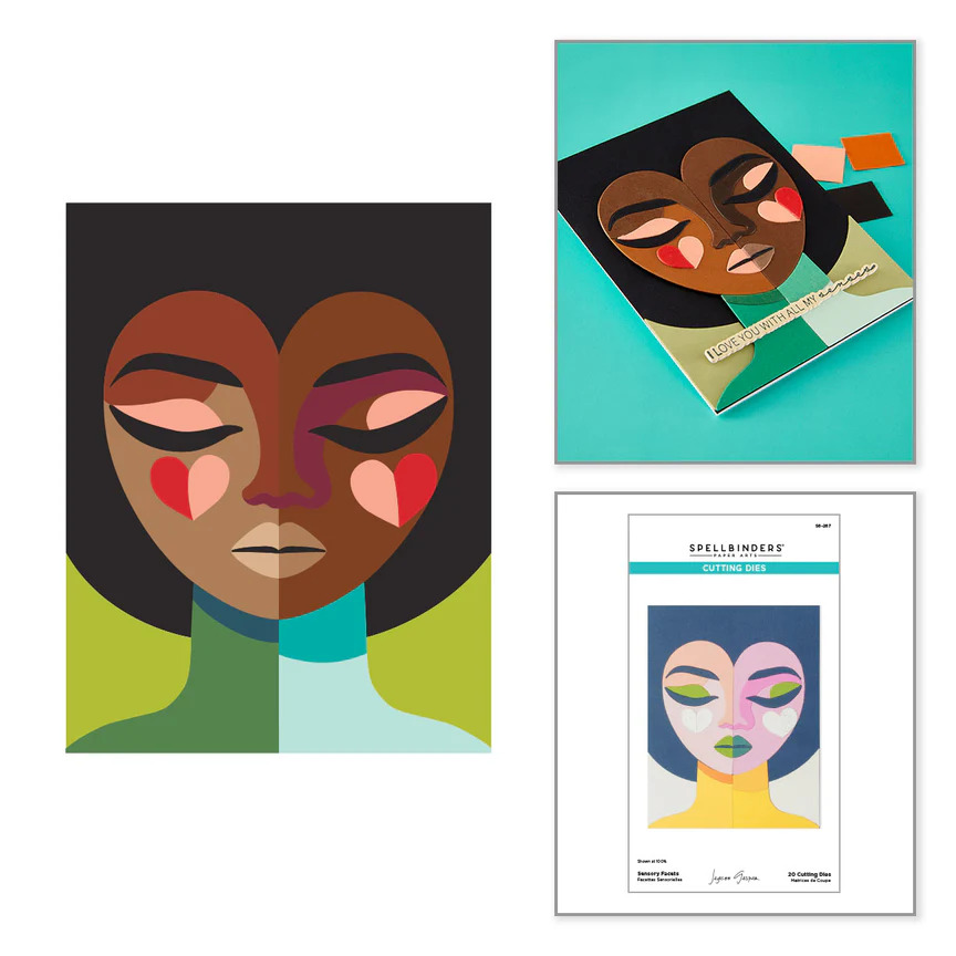 I Sensory Facets Etched Dies fanno parte della All My Senses Collection di Jaycee Gaspar. Il set di 20 fustelle in metallo sottile crea un audace volto con testa a forma di cuore e due guance a forma di cuore. Il volto รจ composto da molti pezzi angolati per mostrare le sue molteplici sfaccettature di personalitร ! Il design finito misura circa 5,50 x 4,25 in./14,00 x 10,80 cm.