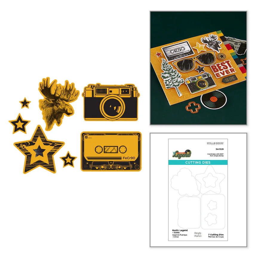 Home ยป Novitร ยป SPELLBINDERS -Collezione Rustic Legend with Simple Stories – Icons Etched Dies for Coordinating Stamp Set
