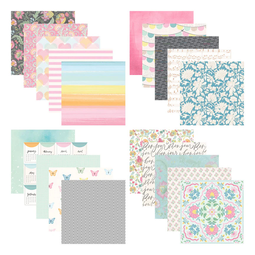 Il blocco di carta designer “Rosie’s Studio Jubilee 6 x 6” include 40 fogli di carta decorativa senza acidi da 120 gsm, con 20 design diversi (due fogli per ciascun design), inclusi motivi con dettagli in foil. Crea progetti di carta con dolci combinazioni di tonalità delicate di rosa, verde, giallo, blu e altro. I motivi presentano fiori, pattern ripetuti e altri dettagli decorativi.