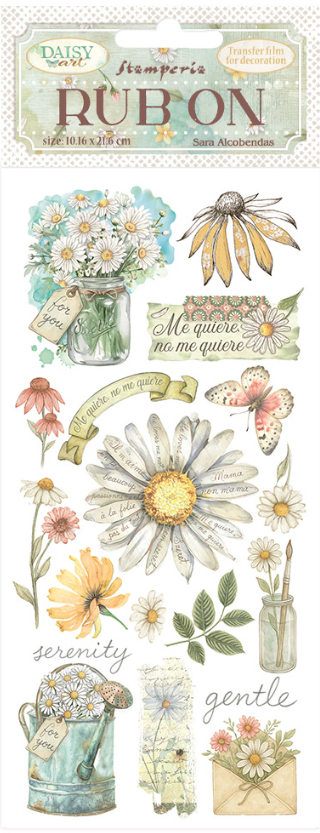Stamperia – Collezione Daisy Art -Rub-on cm 10,16×21,6 – Me quiere no me quiere