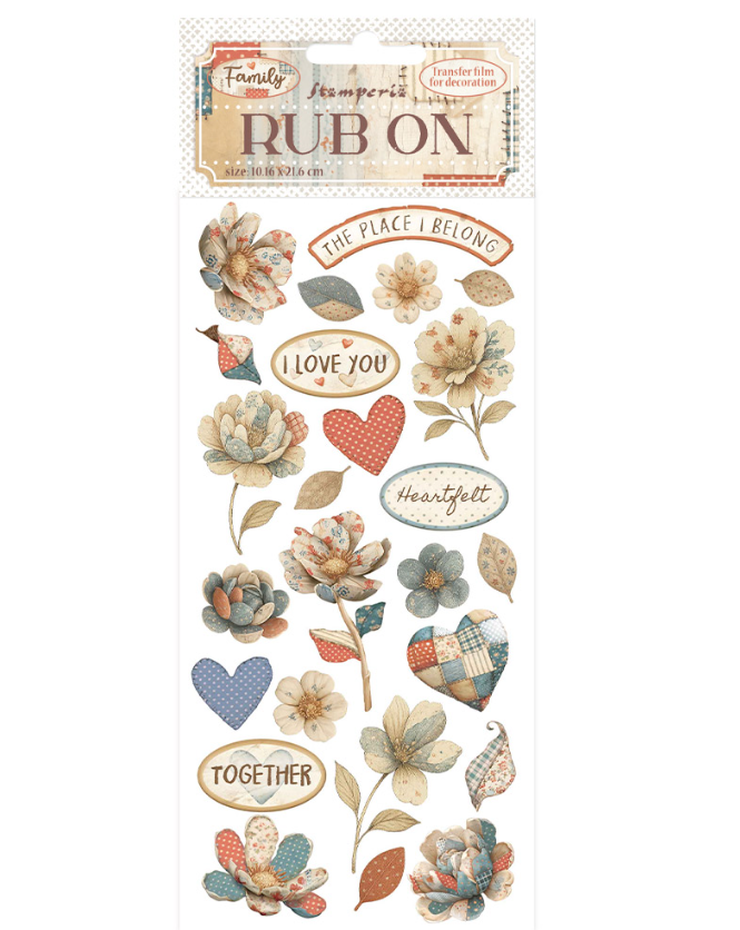 STAMPERIA – Collezione Family – Rub on cm 10,16×21,6 patchwork fiori