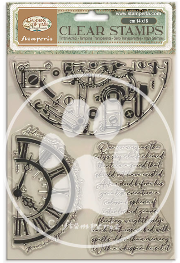 STAMPERIA – Collezione Gardens of Time –  Decorative Acrylic stamp design for Art and Craft cm 14×18 – Gardens of Time half clocks