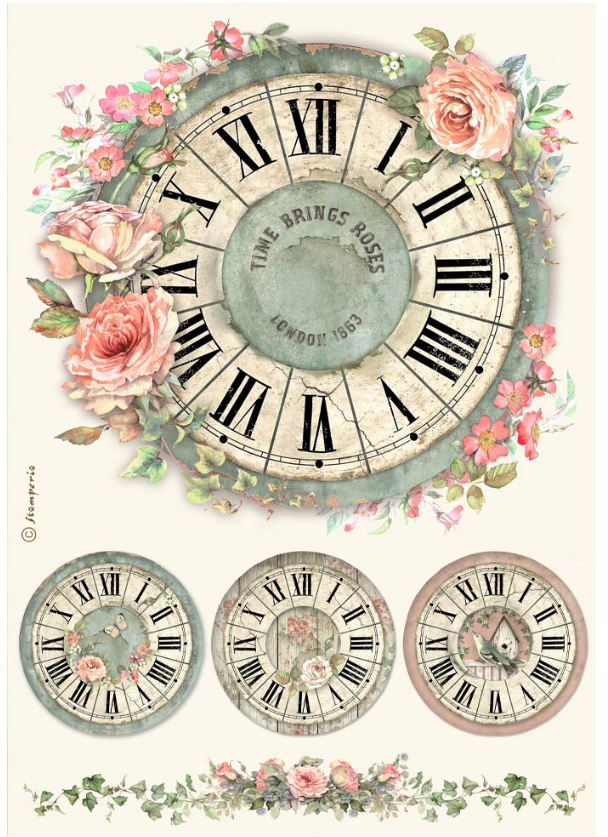 STAMPERIA –  Collezione House of Roses –    A4 Rice paper packed – House of Roses clock