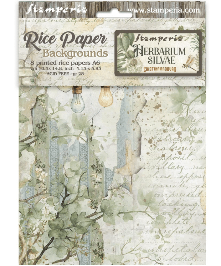 STAMPERIA – Selezione 8 Carta di riso fto A6 Backgrounds Herbarium Silvae