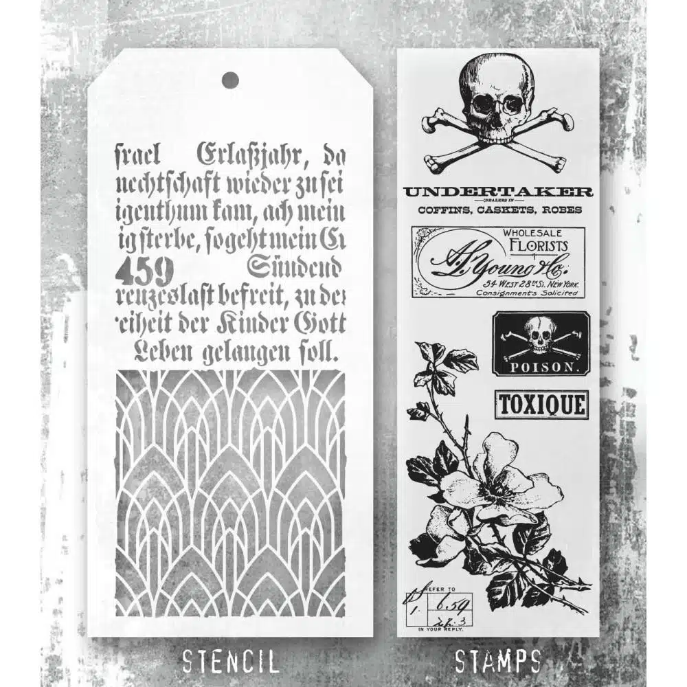 Tim Holtz Mixed-Media Stamps & Stencil – Rest In Peace