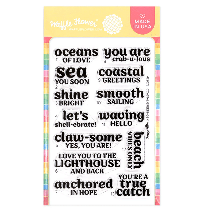 “Coastal Greetings” 1 11/16″ w x 5/8″ h