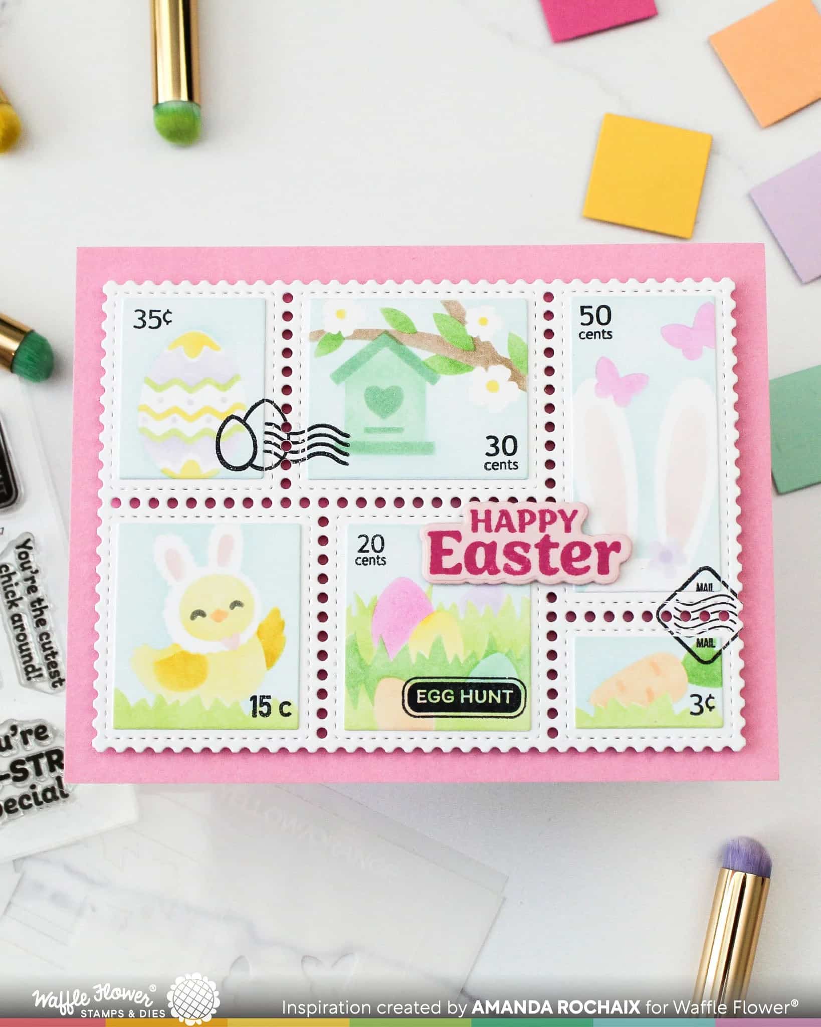 WAFFLE FLOWER – Postage Collage Egg Hunt Stencil